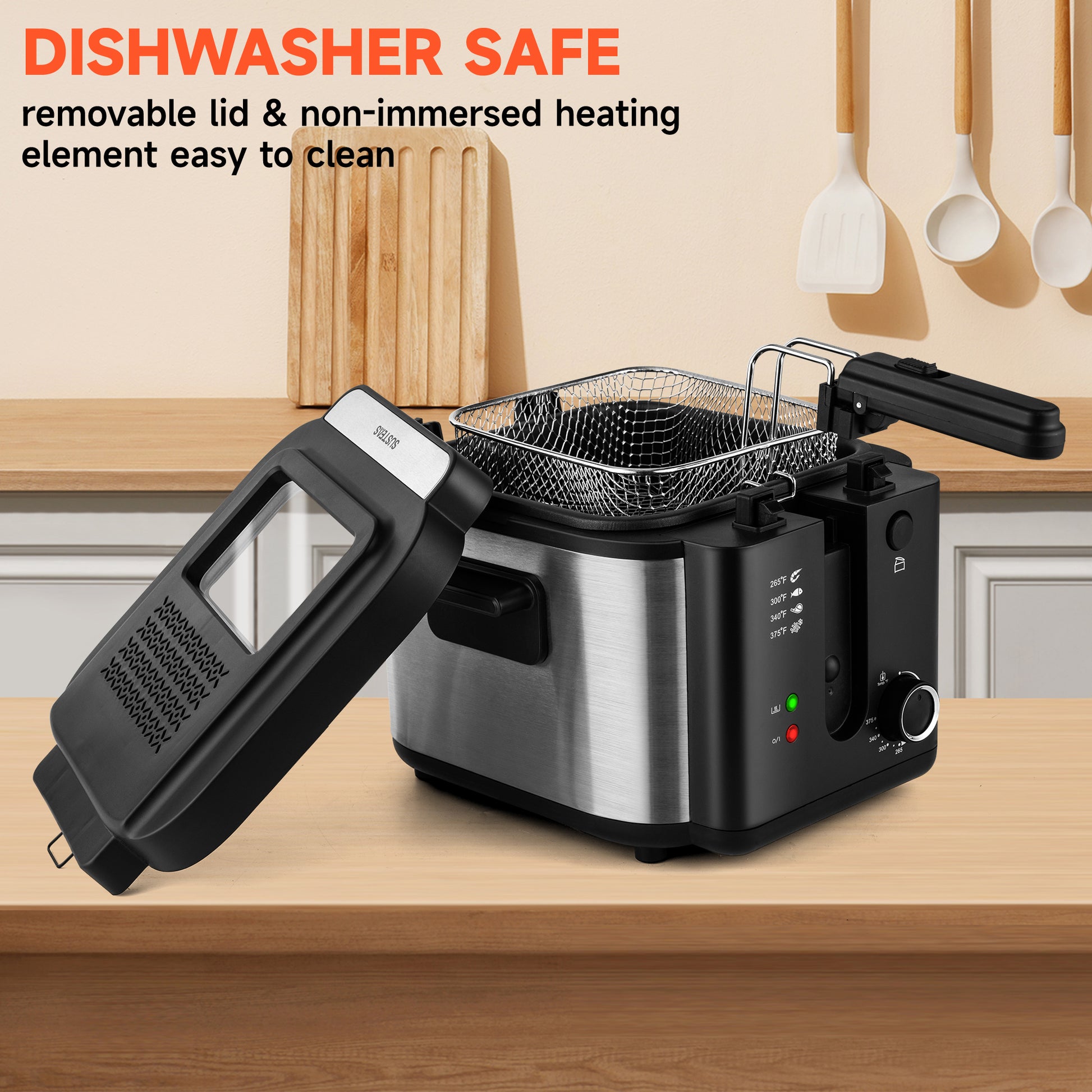 Stainless steel body+non stick inner liner: Made of food grade materials that are safe and durable, cleaning only requires a quick rinse and wipe, making it easy to pour oil and wash the pot, completely breaking away from the stereotype of "deep fryer=difficult to wash pot";