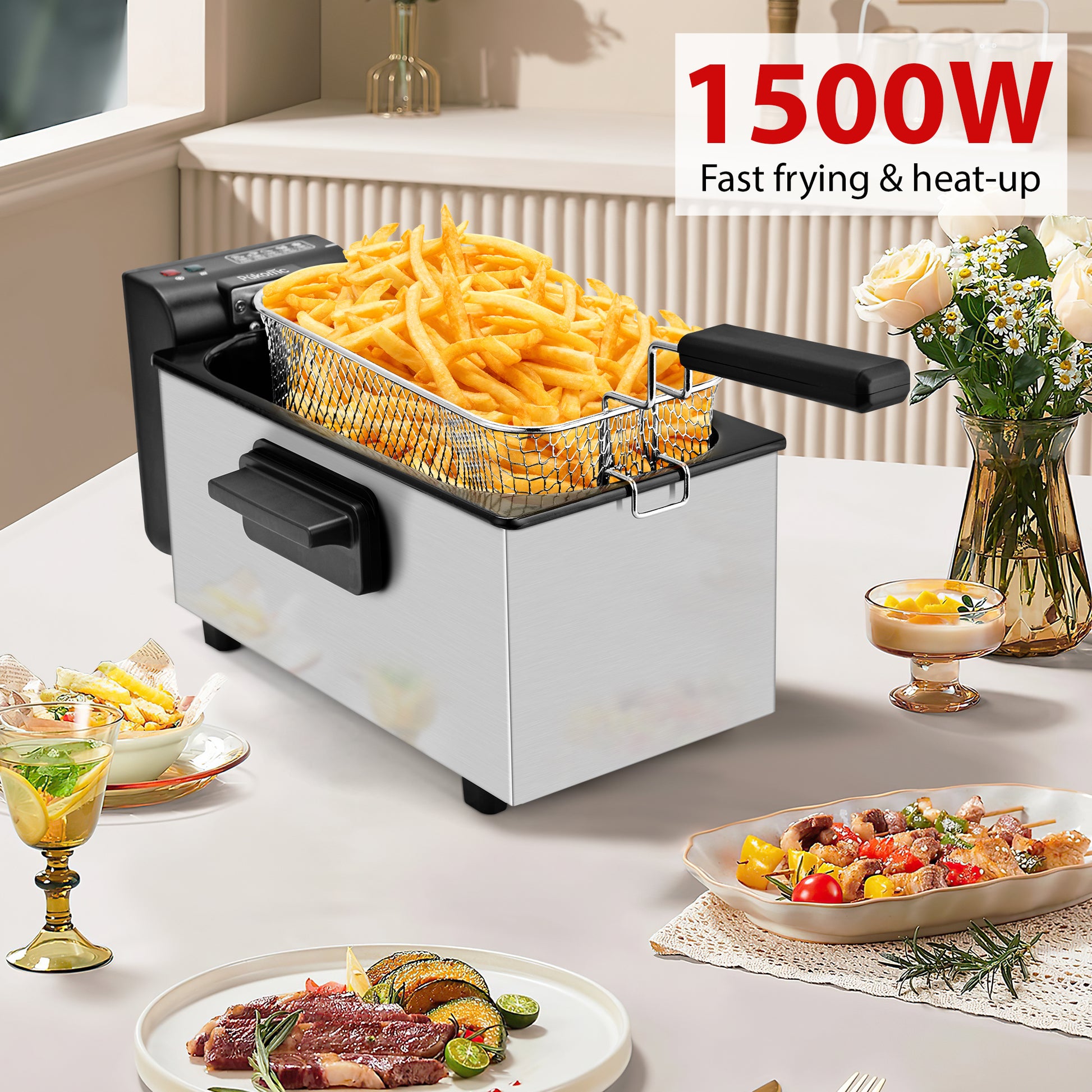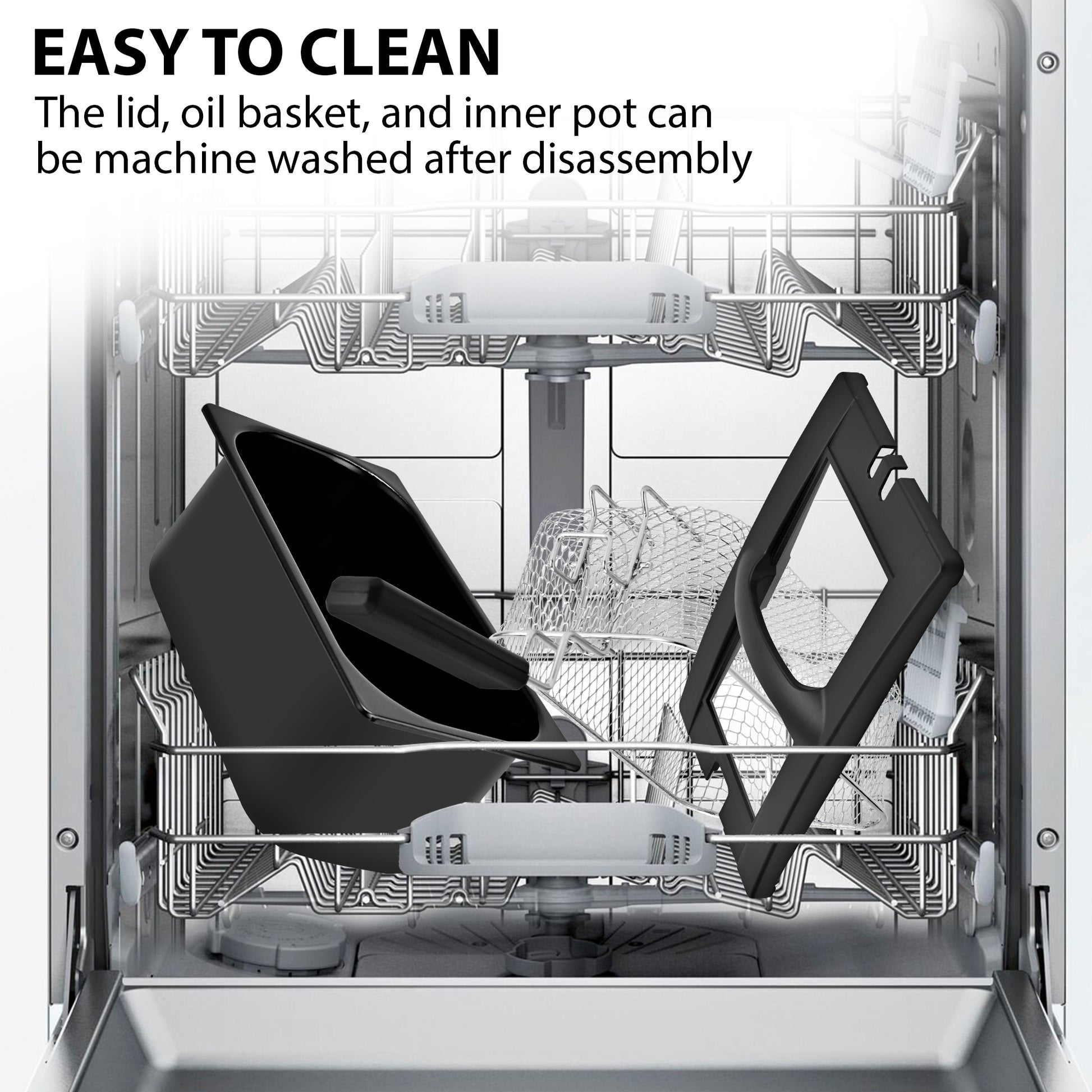 Stainless steel body, durable and easy to clean: The one-piece stainless steel pot body is corrosion-resistant and high-temperature resistant. The frying basket can be disassembled, and oil stains can be cleaned in one go, making kitchen cleaning effortless.